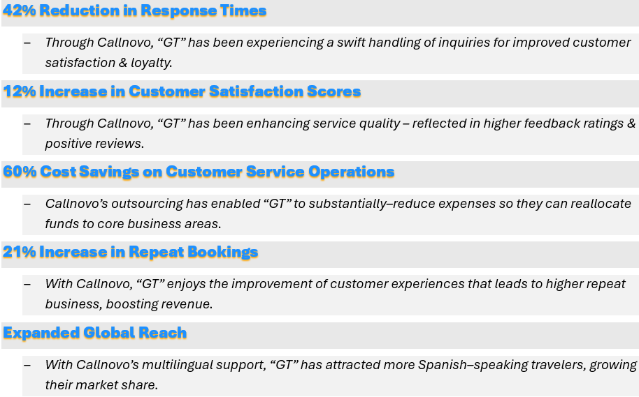 Our partnership @ Callnovo with “GT” illustrates how specialized outsourced call center solutions for the tourism industry drive significant improvements in service quality & operational efficiency.