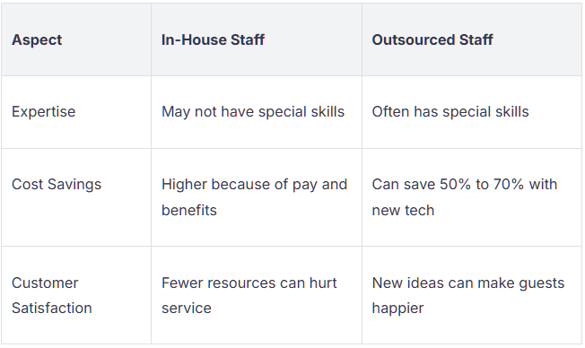 on the other hand, works differently. You pay a company to handle specific jobs with Outsourced Restaurant Staff, which can save you money. You don’t have to cover salaries and benefits for every position all the time. You can also save by using workers from areas with lower wages. This approach helps you keep your budget steady, even if your staffing needs change month to month.