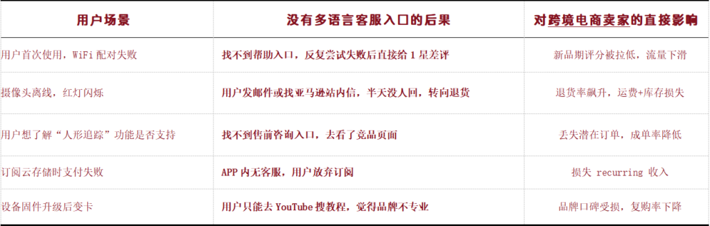 以打欧美市场的某安防监控摄像头为例:APP里没有服务欧美市场的客服,到底有多痛?